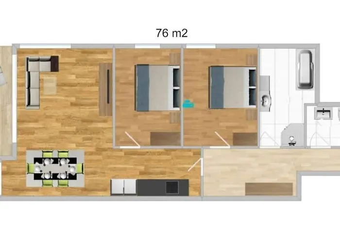 Διαμέρισμα των 76 τ. Μ. Διαθέτει μπαλκόνι, καναπέ και παροχές τσάι/καφέ σε κάθε δωμάτιο. Το κατάλυμα έχει επίσης 1 μπάνια. Το διαμέρισμα έχει 1 υπνοδωμάτια. Επίσης, το διαμέρισμα διαθέτει μπανιέρα και ντους στο μπάνιο.